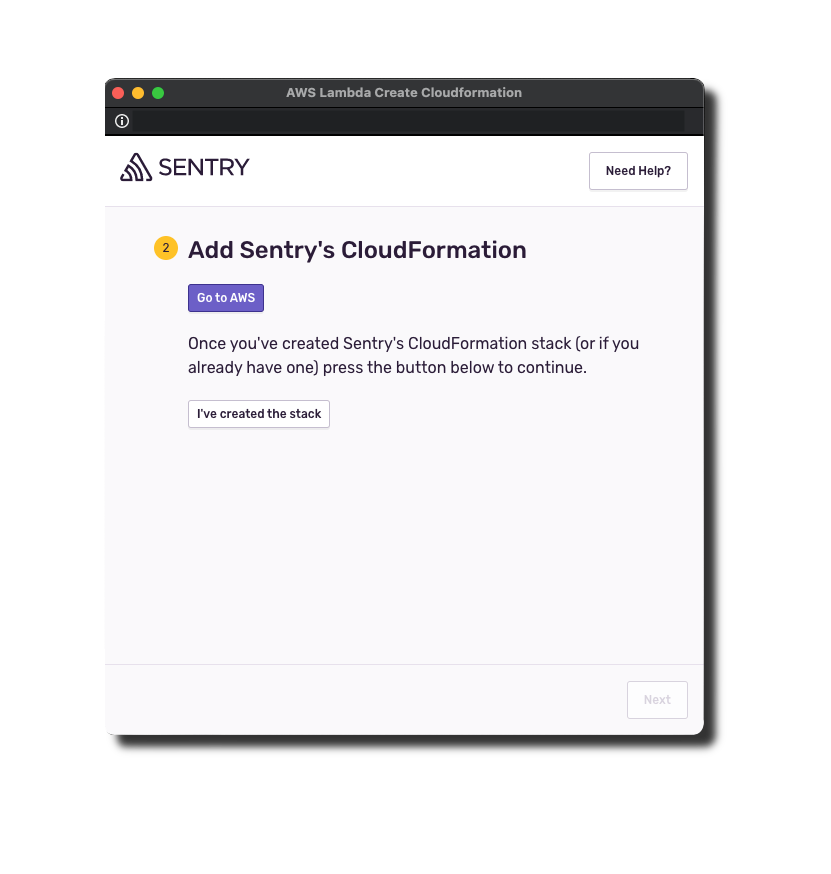 Wait for the stack to be created. Once it's confirmed and the status changes to Create Complete, click I've created the stack in the Sentry popup.